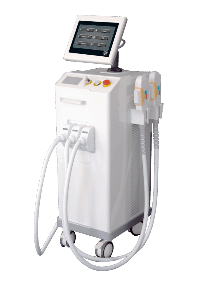 6種類のハンドピースを備えており、ハンドピースとフィルターを調整することで多様な光治療が可能になります。(シミ治療・医療脱毛で使用するハンドピースとフィルターを使い分けています)